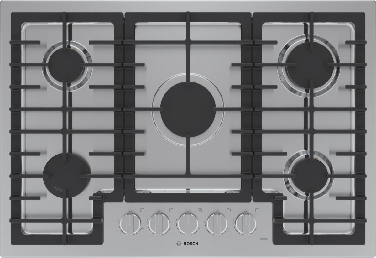 The full width continuous cast iron grate design makes sliding heavy pots easier around the cooking surface.