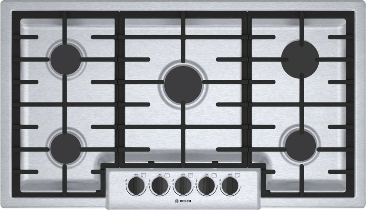 Bosch 500 Series 36" Gas Cooktop-Stainless Steel with 5 burners, push-to-turn knobs and sealed burnersRead More