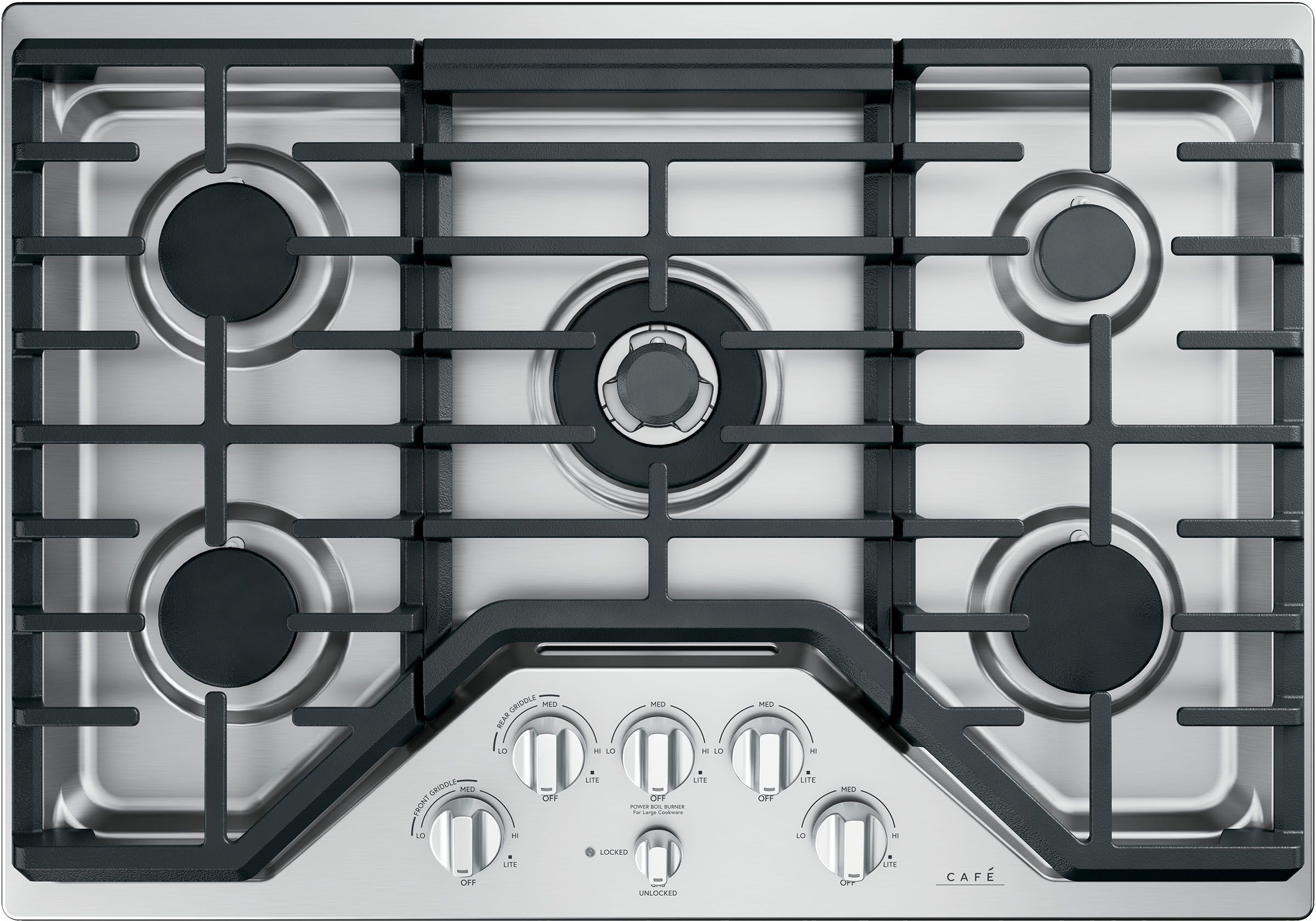 | Cooktop Burner Grate Features | Continuous Grates Dishwasher Safe Edge-to-Edge Grates |