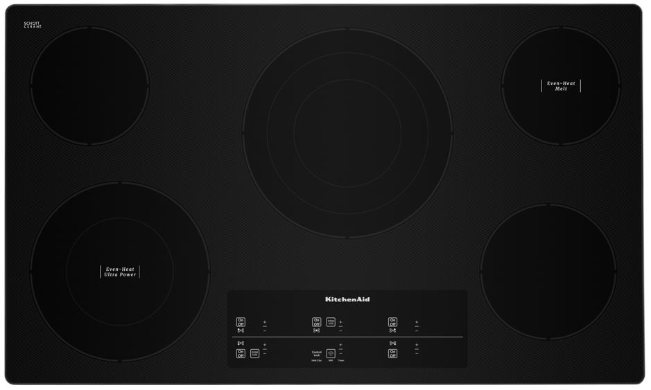 This 36" electric cooktop combines the lasting beauty of a black glass surface with the performance of a 10'' Even-Heat™ Ultra Power™ Element with Simmer Setting, two 6'' Even-Heat™ Elements with Melt Setting, and 12''/9''/6'' Triple-Ring Round Element that maximizes your flexibility with three distinct rings to allow for element selection based on cookware size.Read More