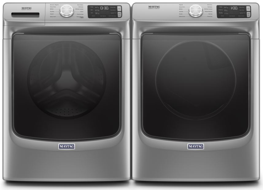 Maytag® Metallic Slate Laundry Pair with a 5.5 cu. ft. capacity washer and a 7.3 cu. ft. capacity gas dryer.Read More